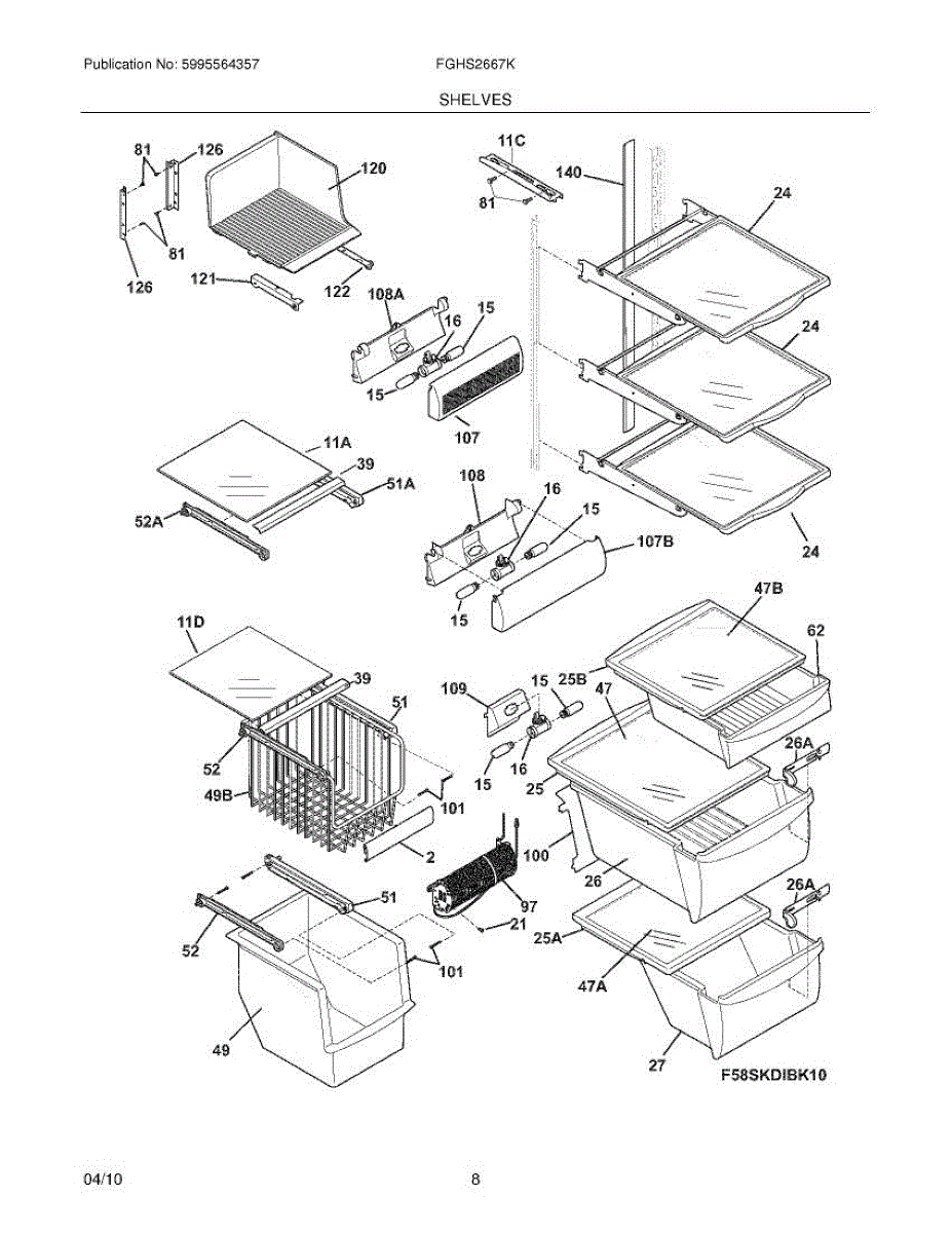 Glass shelf for side-by-side refrigerators. Provides durable storage surface inside fresh food compartment. Replace if cracked, broken, or missing.