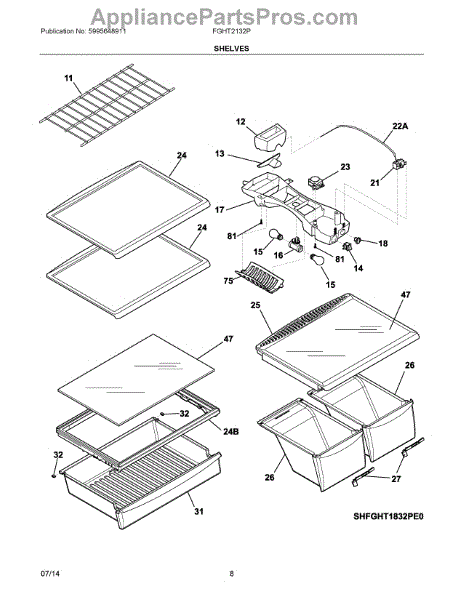 The Crisper Pan Cover is an OEM part for Frigidaire refrigerators. It serves as the shelf that sits above the crisper drawers and supports various items while providing a lid to help maintain the humidity levels necessary to keep fruits and vegetables fresh longer. This cover typically is only the frame and does not include the glass.