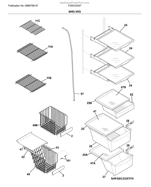 Parts for Frigidaire FGSC2335TD5: Shelves Parts