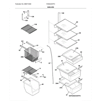 The Shelf is an OEM replacement part for Frigidaire refrigerators. It provides flexible storage and organization for items inside the refrigerator. Shelves are essential for maximizing interior capacity and accommodating groceries of various heights and sizes. Causes of a bad shelf can include wear and tear over time, damage from excessive weight, or accidental breakage. Handles might loosen or cracks could develop in the surface. Symptoms of a bad shelf include: