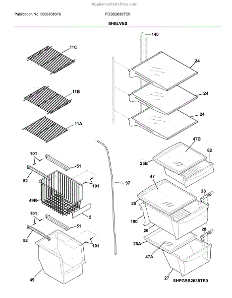 Parts for Frigidaire FGSS2635TD5: Shelves Parts