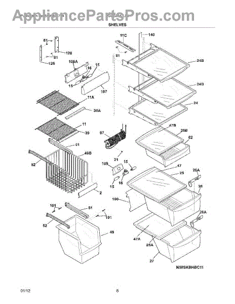 Parts for Frigidaire FGUS2647LF2: 09 - Shelves Parts