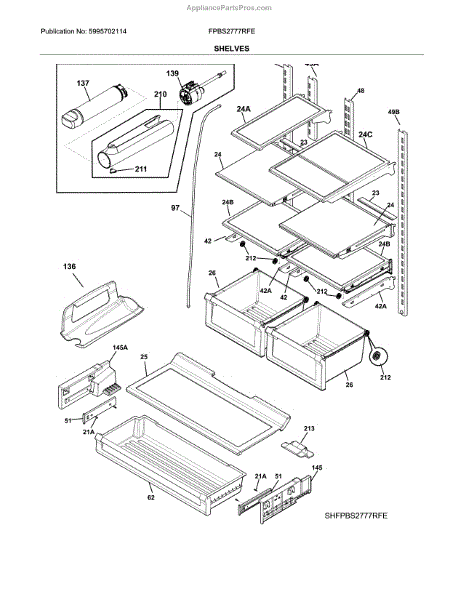 Parts for Frigidaire FPBS2777RFE: Shelves Parts