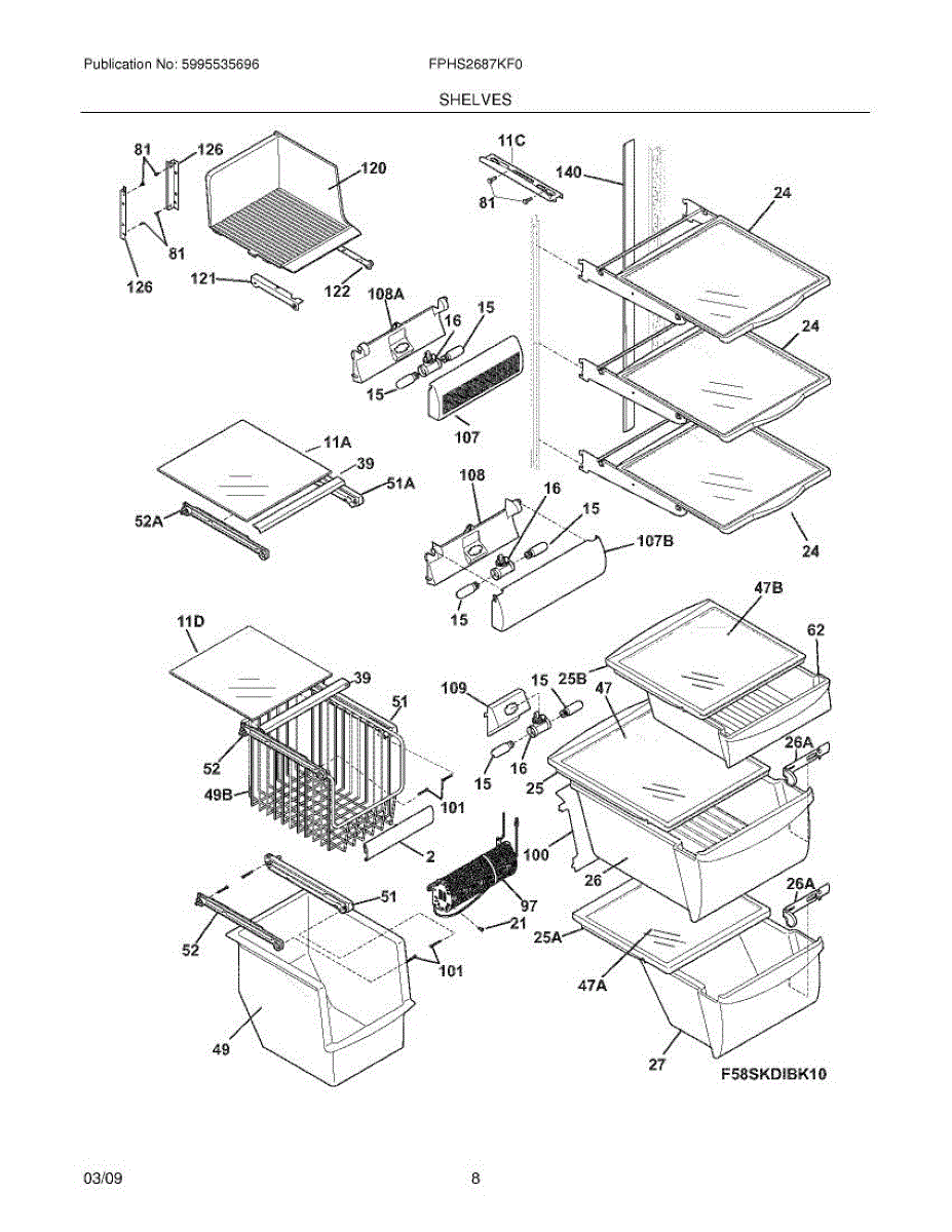 Parts for Frigidaire FPHS2687KF0: 09 - Shelves Parts