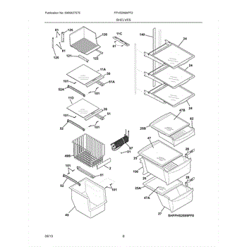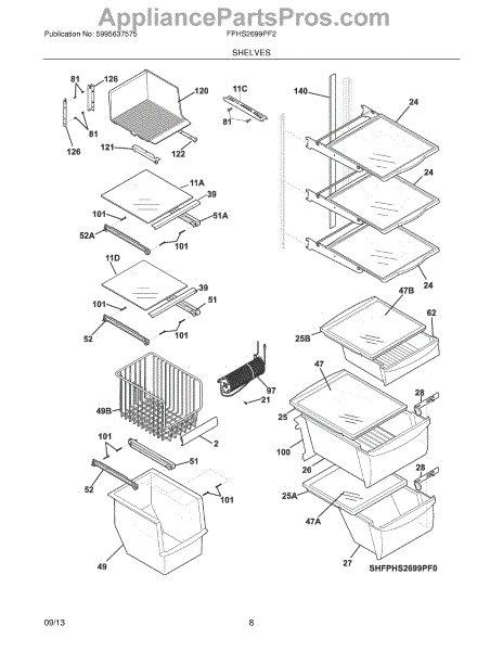Over time, the glass shelf can become damaged due to heavy items being placed on it, accidental impacts, or thermal stress from temperature changes. Replacing a damaged shelf ensures safe and effective storage inside the refrigerator.
