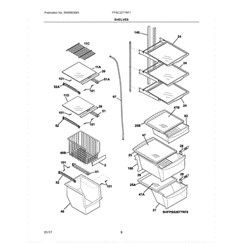 The Frigidaire Crisper Drawer Cover is an OEM replacement part for Frigidaire model fridges. It measures approximately 17" x 17” and is located covering the bottom crisper drawer.