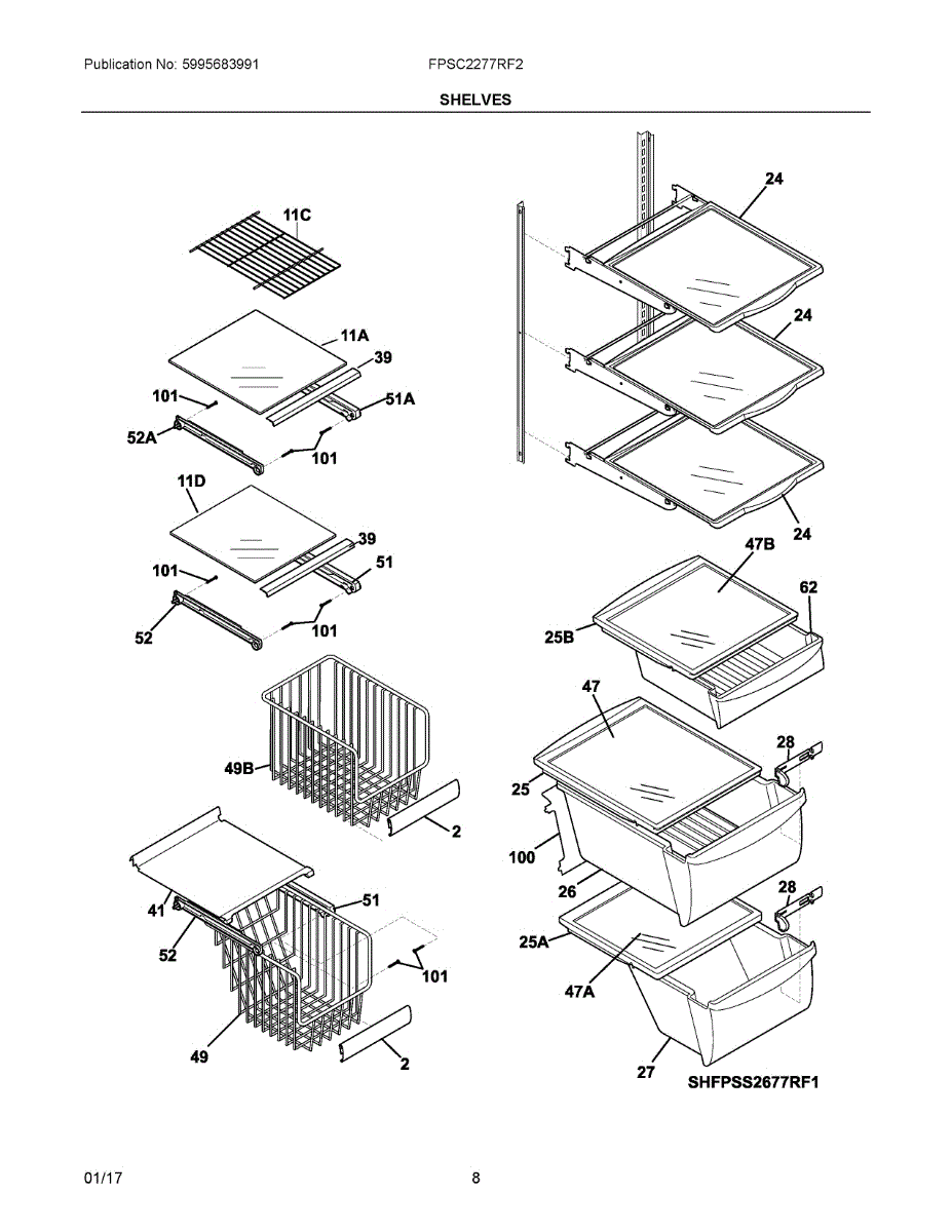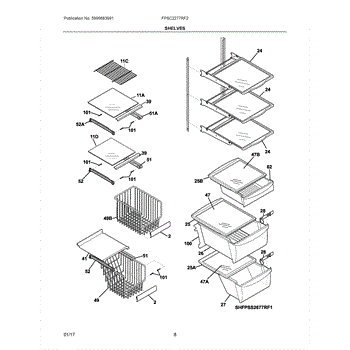 The Frigidaire Crisper Drawer Cover is an OEM replacement part for Frigidaire model fridges. It measures approximately 17" x 17” and is located covering the bottom crisper drawer.