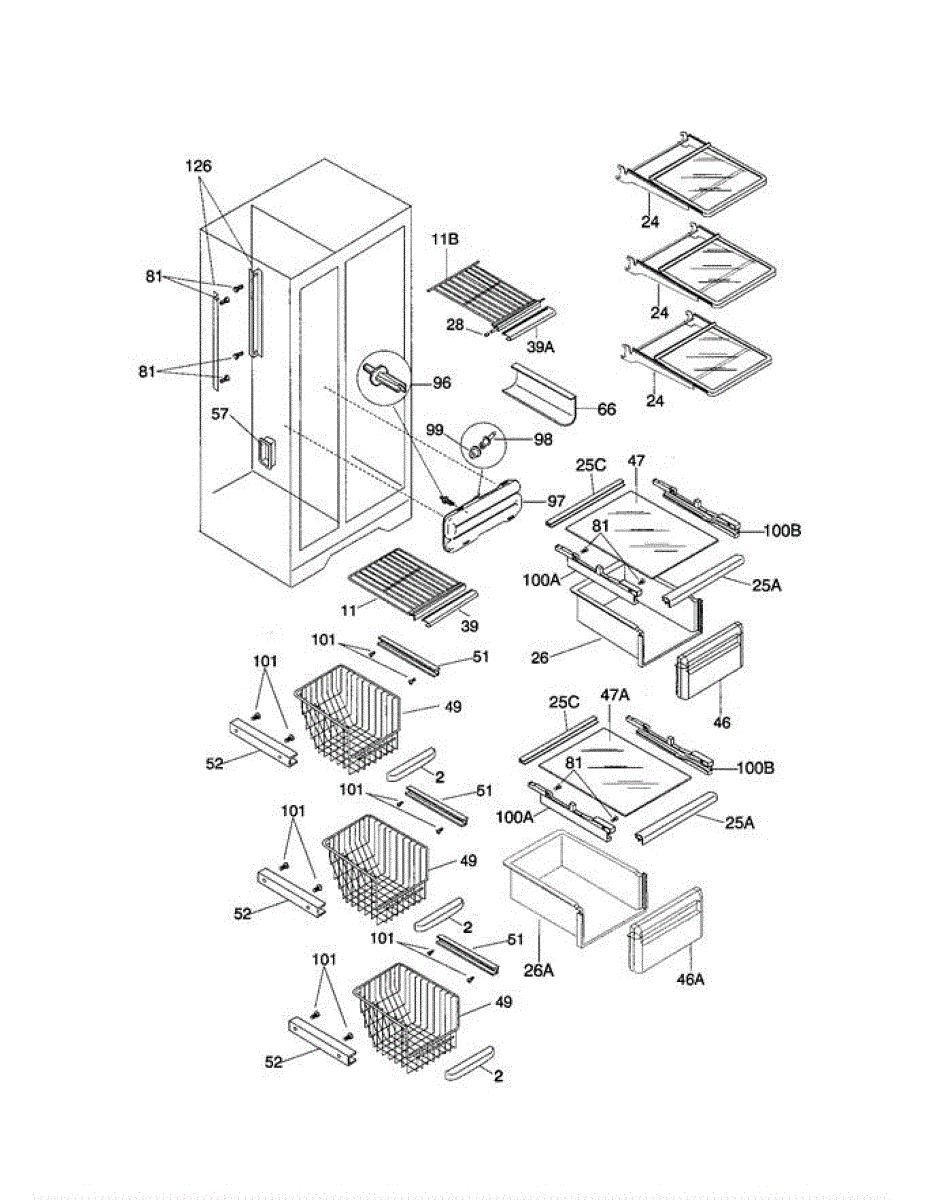 Refrigerator door bin versashelf that mounts inside the door to hold condiments, bottles, or eggs. Replace if cracked, broken, or missing from your unit.