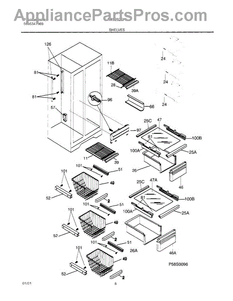 Secures cantilever shelves to prevent shifting or slipping. Replace if cracked, broken, or missing to restore stable shelf support. Confirm fit with model.