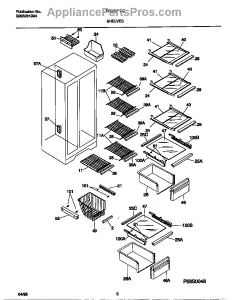 The Upper Crisper Pan is an OEM replacement part for Frigidaire refrigerators. Located on the slidable tracks inside fresh food section that holds the vegetables/produce. The pan measures about 16-1/2 inches wide by 8 inches high by 16 inches deep. The drawer front is not included for lower pan order 5303289501. Causes of a bad upper crisper pan may be cracks in plastic developing over extended use, stains that render it unsuitable for food contact, or warping from exposure to wet environments inside the crisper. Symptoms of a bad upper crisper pan include: