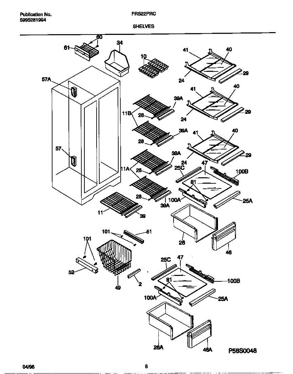 The Upper Crisper Pan is an OEM replacement part for Frigidaire refrigerators. Located on the slidable tracks inside fresh food section that holds the vegetables/produce. The pan measures about 16-1/2 inches wide by 8 inches high by 16 inches deep. The drawer front is not included for lower pan order 5303289501. Causes of a bad upper crisper pan may be cracks in plastic developing over extended use, stains that render it unsuitable for food contact, or warping from exposure to wet environments inside the crisper. Symptoms of a bad upper crisper pan include: