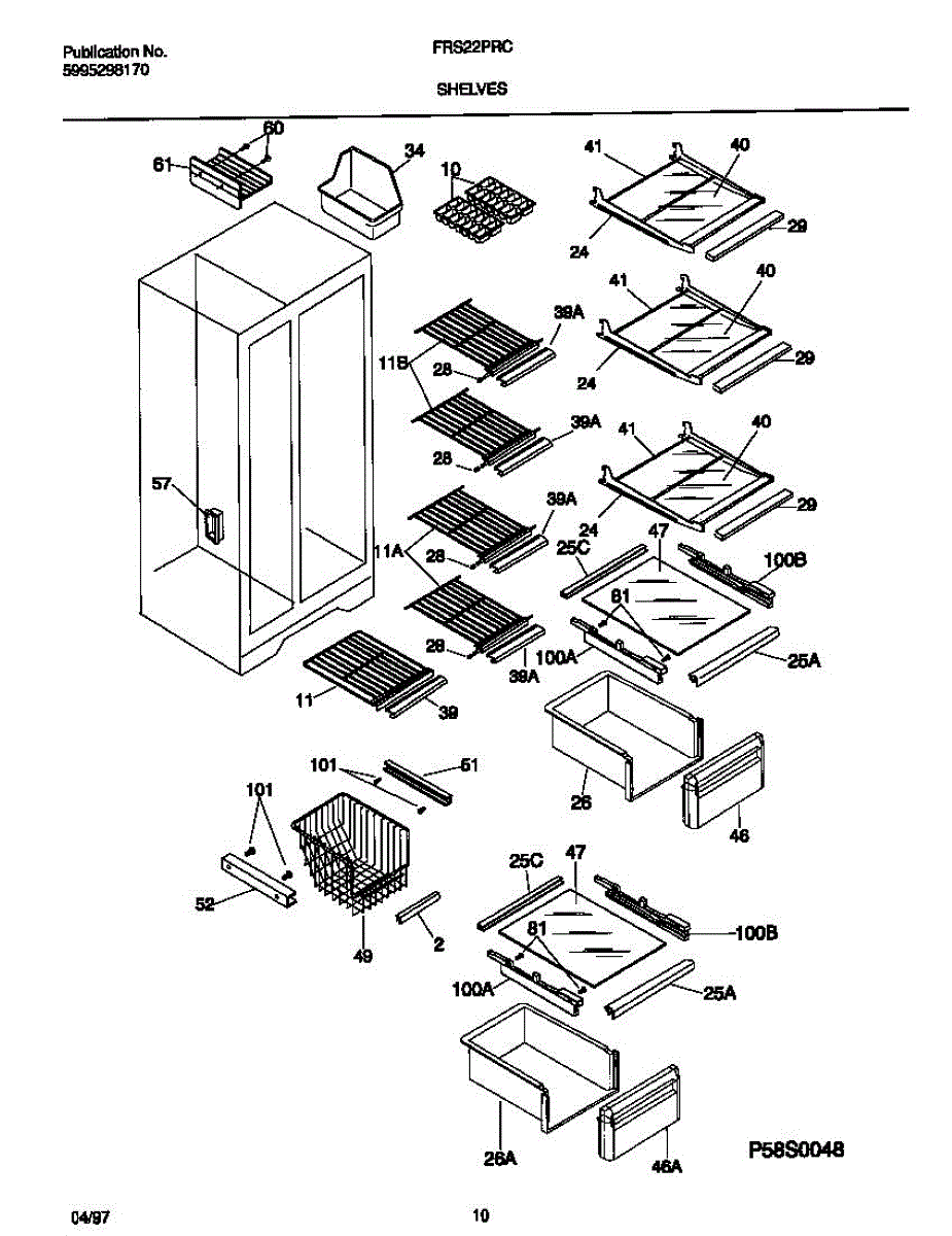 The Upper Crisper Pan is an OEM replacement part for Frigidaire refrigerators. Located on the slidable tracks inside fresh food section that holds the vegetables/produce. The pan measures about 16-1/2 inches wide by 8 inches high by 16 inches deep. The drawer front is not included for lower pan order 5303289501. Causes of a bad upper crisper pan may be cracks in plastic developing over extended use, stains that render it unsuitable for food contact, or warping from exposure to wet environments inside the crisper. Symptoms of a bad upper crisper pan include: