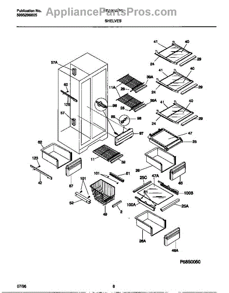The Upper Crisper Pan is an OEM replacement part for Frigidaire refrigerators. Located on the slidable tracks inside fresh food section that holds the vegetables/produce. The pan measures about 16-1/2 inches wide by 8 inches high by 16 inches deep. The drawer front is not included for lower pan order 5303289501. Causes of a bad upper crisper pan may be cracks in plastic developing over extended use, stains that render it unsuitable for food contact, or warping from exposure to wet environments inside the crisper. Symptoms of a bad upper crisper pan include: