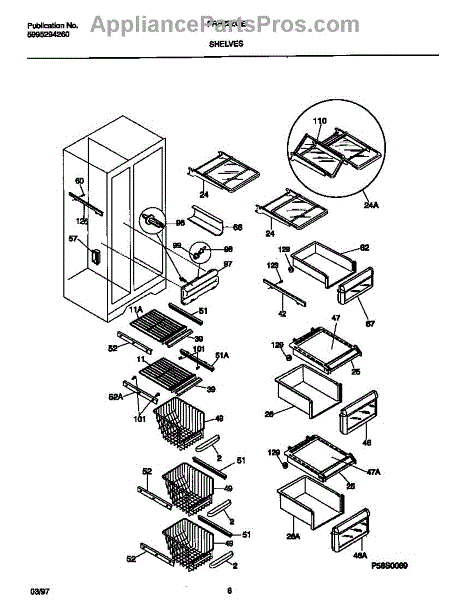 The Upper Crisper Pan is an OEM replacement part for Frigidaire refrigerators. Located on the slidable tracks inside fresh food section that holds the vegetables/produce. The pan measures about 16-1/2 inches wide by 8 inches high by 16 inches deep. The drawer front is not included for lower pan order 5303289501. Causes of a bad upper crisper pan may be cracks in plastic developing over extended use, stains that render it unsuitable for food contact, or warping from exposure to wet environments inside the crisper. Symptoms of a bad upper crisper pan include: