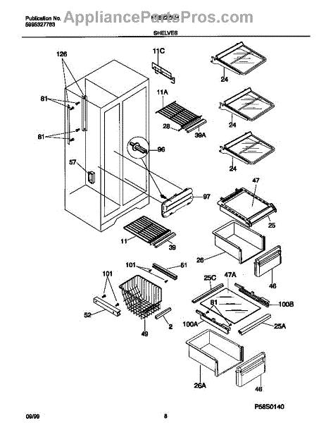 The Upper Crisper Pan is an OEM replacement part for Frigidaire refrigerators. Located on the slidable tracks inside fresh food section that holds the vegetables/produce. The pan measures about 16-1/2 inches wide by 8 inches high by 16 inches deep. The drawer front is not included for lower pan order 5303289501. Causes of a bad upper crisper pan may be cracks in plastic developing over extended use, stains that render it unsuitable for food contact, or warping from exposure to wet environments inside the crisper. Symptoms of a bad upper crisper pan include: