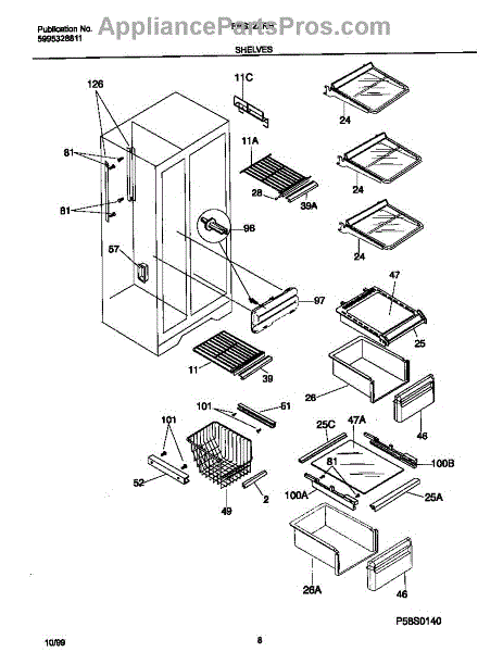 The Upper Crisper Pan is an OEM replacement part for Frigidaire refrigerators. Located on the slidable tracks inside fresh food section that holds the vegetables/produce. The pan measures about 16-1/2 inches wide by 8 inches high by 16 inches deep. The drawer front is not included for lower pan order 5303289501. Causes of a bad upper crisper pan may be cracks in plastic developing over extended use, stains that render it unsuitable for food contact, or warping from exposure to wet environments inside the crisper. Symptoms of a bad upper crisper pan include: