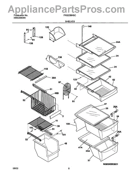 This shelf and trim assembly replaces a damaged or worn refrigerator shelf trim to restore a secure shelf edge and improve storage stability. It provides the finished trim piece that retains items and keeps the shelf seated correctly. What it does: