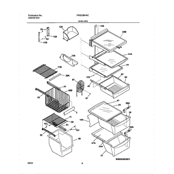 This shelf and trim assembly replaces a damaged or worn refrigerator shelf trim to restore a secure shelf edge and improve storage stability. It provides the finished trim piece that retains items and keeps the shelf seated correctly. What it does: