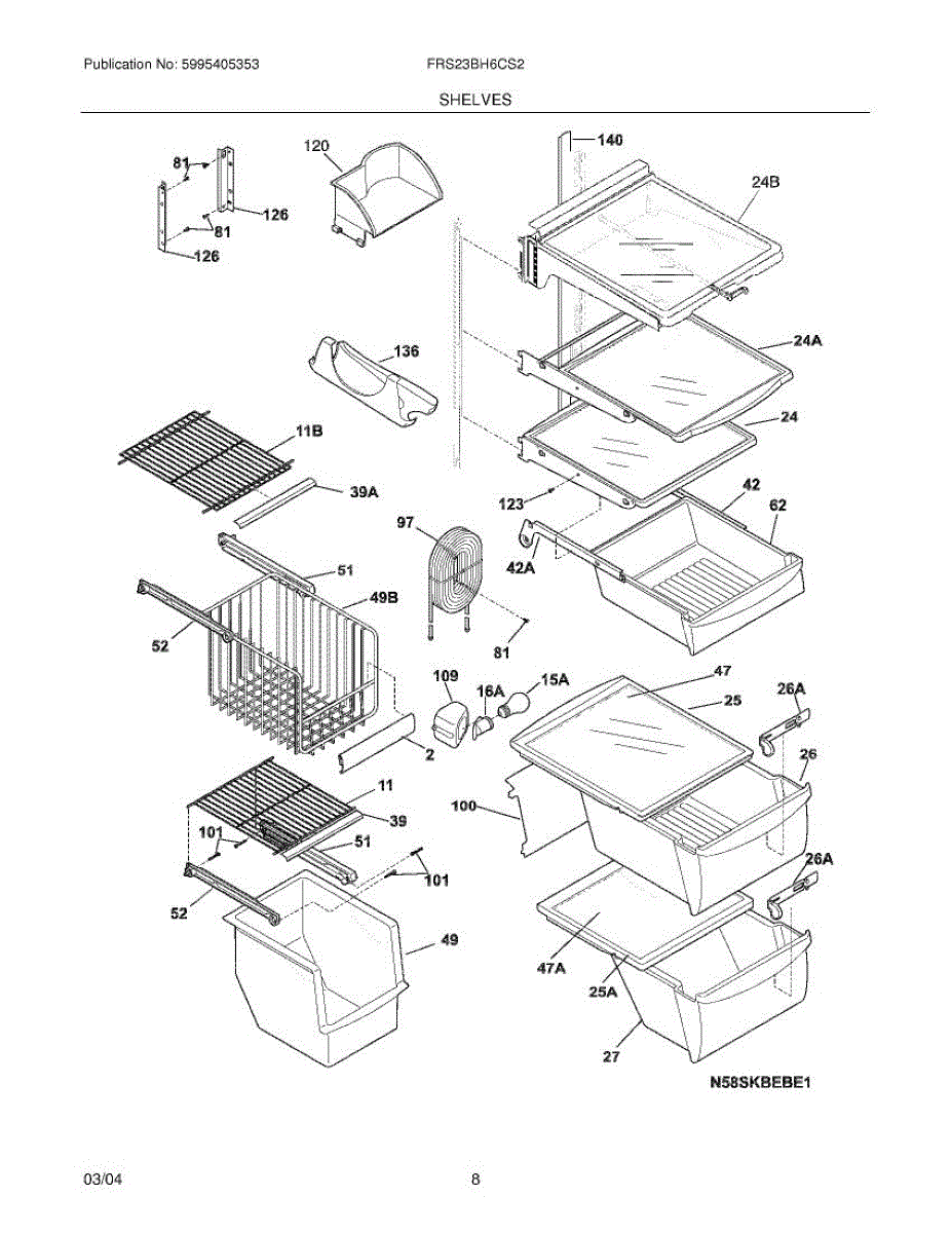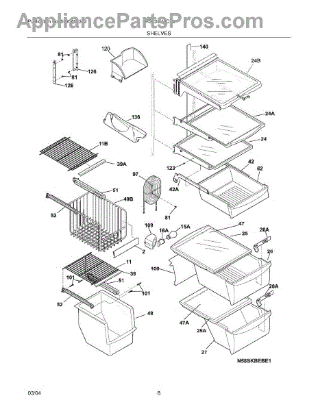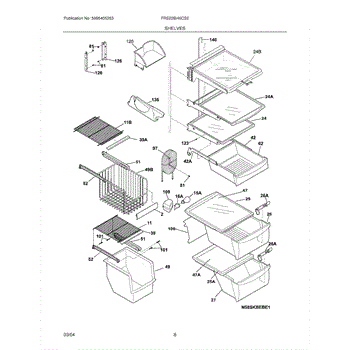 This shelf and trim assembly replaces a damaged or worn refrigerator shelf trim to restore a secure shelf edge and improve storage stability. It provides the finished trim piece that retains items and keeps the shelf seated correctly. What it does: