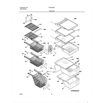 This shelf and trim assembly replaces a damaged or worn refrigerator shelf trim to restore a secure shelf edge and improve storage stability. It provides the finished trim piece that retains items and keeps the shelf seated correctly. What it does: