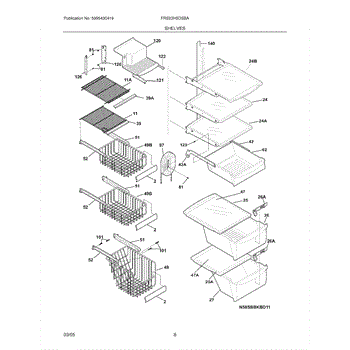This shelf and trim assembly replaces a damaged or worn refrigerator shelf trim to restore a secure shelf edge and improve storage stability. It provides the finished trim piece that retains items and keeps the shelf seated correctly. What it does: