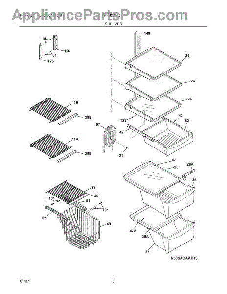 Replacement shelf assembly for the freezer compartment restores a sturdy, level surface for food storage and organization. Replace a damaged or missing shelf to recover capacity, maintain proper spacing, and keep items from shifting.