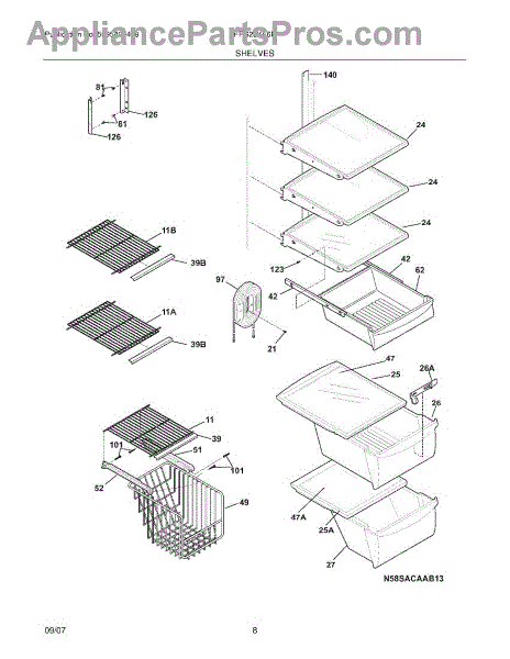 Parts for Frigidaire FRS23KF6EW8: 09 - Shelves Parts