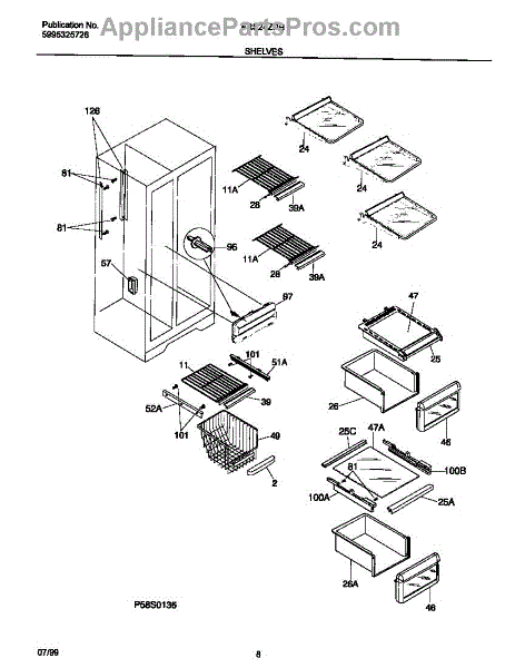 The Upper Crisper Pan is an OEM replacement part for Frigidaire refrigerators. Located on the slidable tracks inside fresh food section that holds the vegetables/produce. The pan measures about 16-1/2 inches wide by 8 inches high by 16 inches deep. The drawer front is not included for lower pan order 5303289501. Causes of a bad upper crisper pan may be cracks in plastic developing over extended use, stains that render it unsuitable for food contact, or warping from exposure to wet environments inside the crisper. Symptoms of a bad upper crisper pan include: