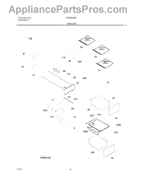 The Upper Crisper Pan is an OEM replacement part for Frigidaire refrigerators. Located on the slidable tracks inside fresh food section that holds the vegetables/produce. The pan measures about 16-1/2 inches wide by 8 inches high by 16 inches deep. The drawer front is not included for lower pan order 5303289501. Causes of a bad upper crisper pan may be cracks in plastic developing over extended use, stains that render it unsuitable for food contact, or warping from exposure to wet environments inside the crisper. Symptoms of a bad upper crisper pan include: