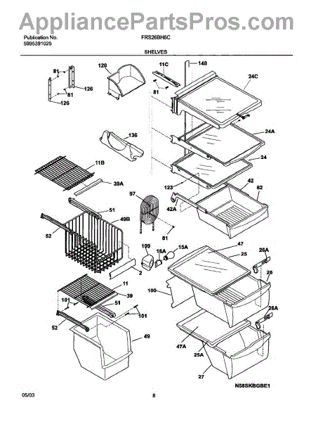 Parts for Frigidaire FRS26BH6CS1: 09 - Shelves Parts