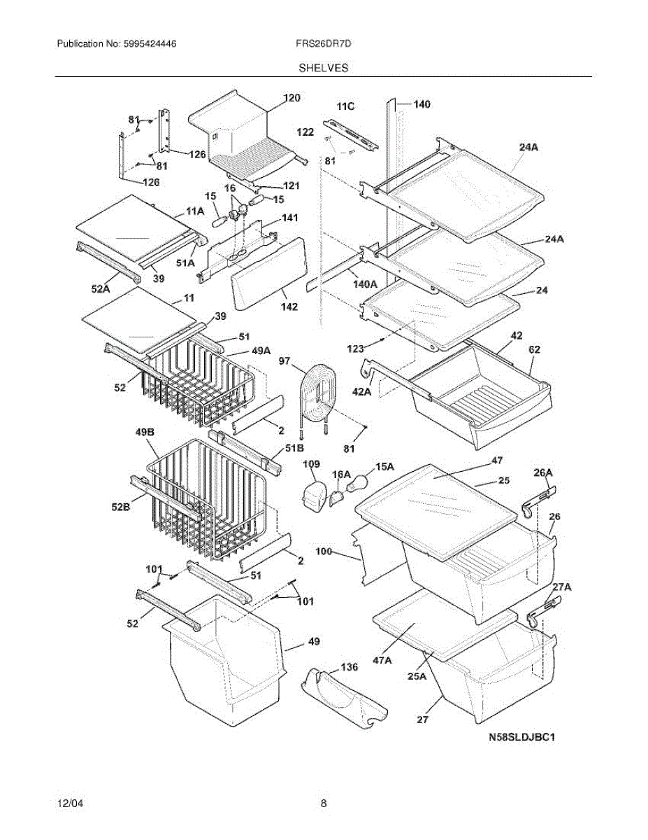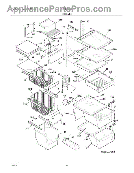 Over time, the glass shelf can become damaged due to heavy items being placed on it, accidental impacts, or thermal stress from temperature changes. Replacing a damaged shelf ensures safe and effective storage inside the refrigerator.