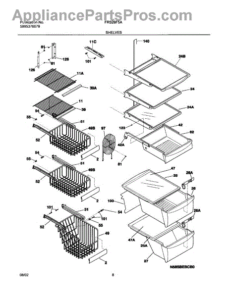 Parts for Frigidaire FRS26F5AW5: 09 - Shelves Parts
