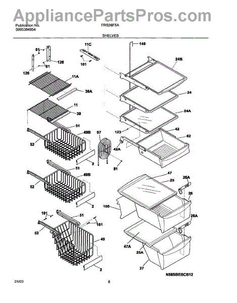 Parts for Frigidaire FRS26F5AW6: 09 - Shelves Parts