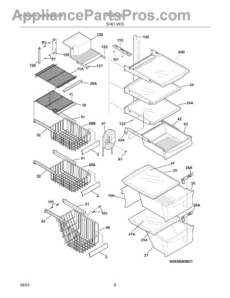 Sliding basket for refrigerator storage compartments. Replace if cracked, broken, or missing. Installs in freezer or fresh food section.