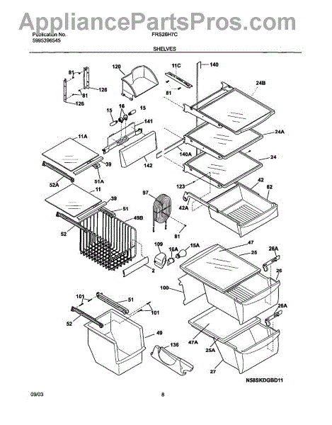 Over time, the glass shelf can become damaged due to heavy items being placed on it, accidental impacts, or thermal stress from temperature changes. Replacing a damaged shelf ensures safe and effective storage inside the refrigerator.