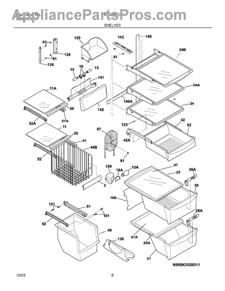 Over time, the glass shelf can become damaged due to heavy items being placed on it, accidental impacts, or thermal stress from temperature changes. Replacing a damaged shelf ensures safe and effective storage inside the refrigerator.