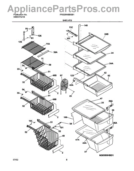 The Refrigerator Shelf is an OEM replacement part for Frigidaire side-by-side refrigerators. It is a durable glass surface that provides adjustable storage for various food items within the refrigerator compartment.