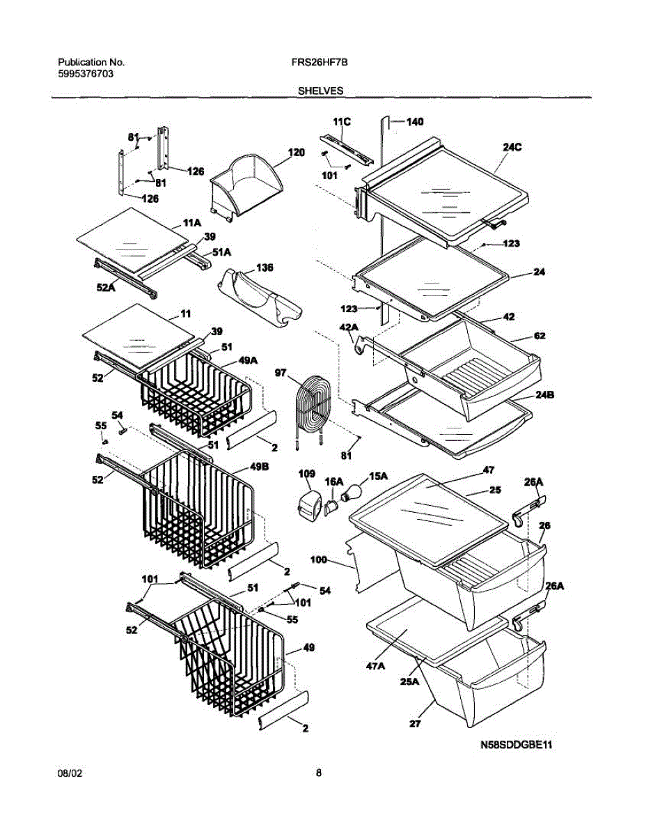 Over time, the glass shelf can become damaged due to heavy items being placed on it, accidental impacts, or thermal stress from temperature changes. Replacing a damaged shelf ensures safe and effective storage inside the refrigerator.