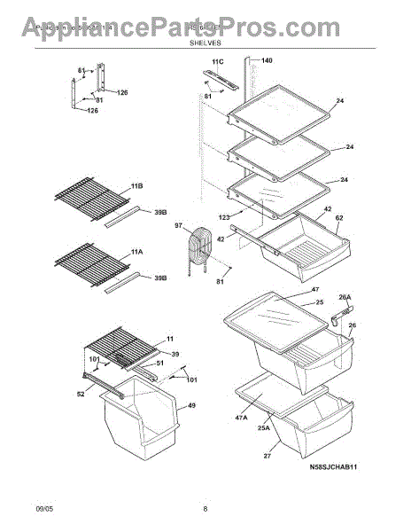 The Refrigerator Shelf is an OEM replacement part for Frigidaire side-by-side refrigerators. It is a durable glass surface that provides adjustable storage for various food items within the refrigerator compartment.