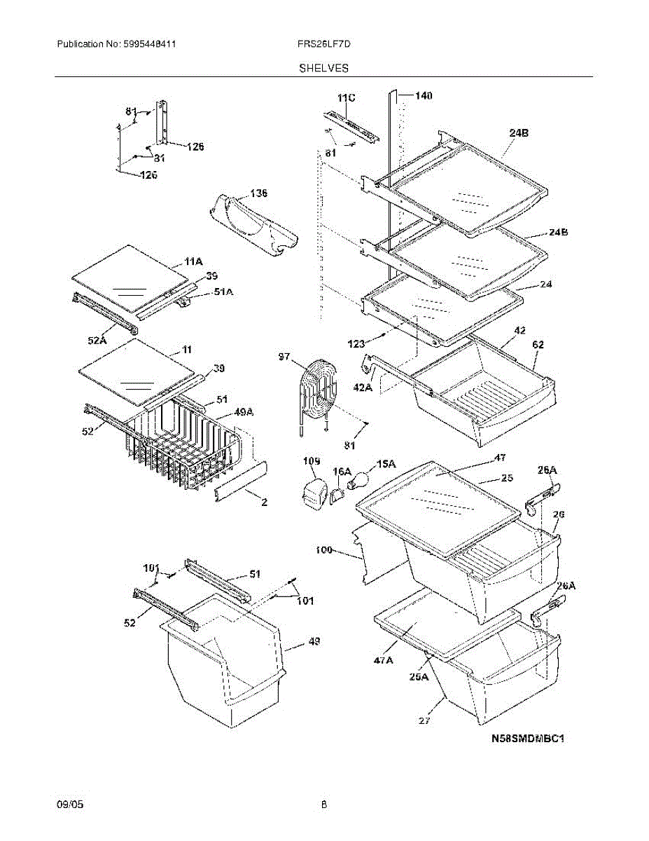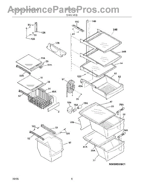 Over time, the glass shelf can become damaged due to heavy items being placed on it, accidental impacts, or thermal stress from temperature changes. Replacing a damaged shelf ensures safe and effective storage inside the refrigerator.