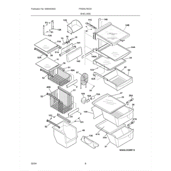 Over time, the glass shelf can become damaged due to heavy items being placed on it, accidental impacts, or thermal stress from temperature changes. Replacing a damaged shelf ensures safe and effective storage inside the refrigerator.