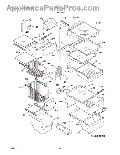 Over time, the glass shelf can become damaged due to heavy items being placed on it, accidental impacts, or thermal stress from temperature changes. Replacing a damaged shelf ensures safe and effective storage inside the refrigerator.