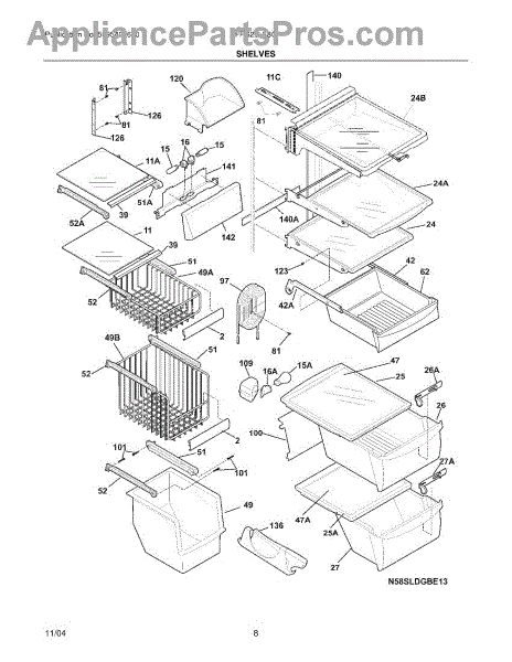 Parts for Frigidaire FRS26LF8CS7: 09 - Shelves Parts