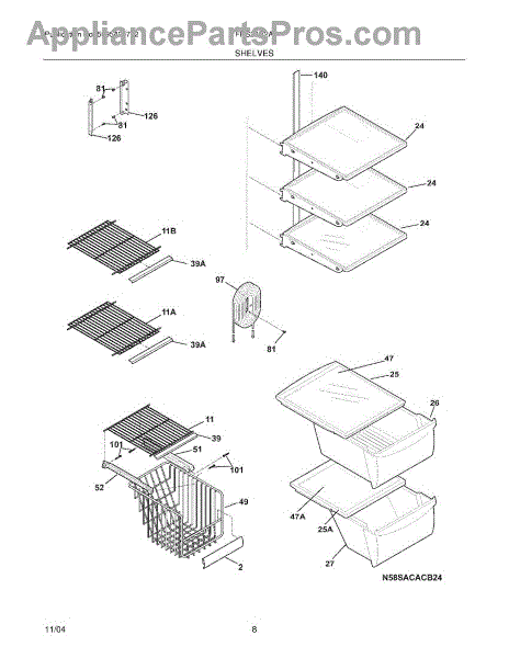 Wire shelf for refrigerator or freezer compartment. Replaces cracked, broken, or missing shelves. Add extra storage or replace damaged shelving.