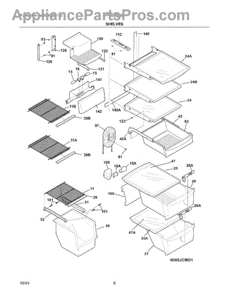 The Refrigerator Shelf is an OEM replacement part for Frigidaire side-by-side refrigerators. It is a durable glass surface that provides adjustable storage for various food items within the refrigerator compartment.