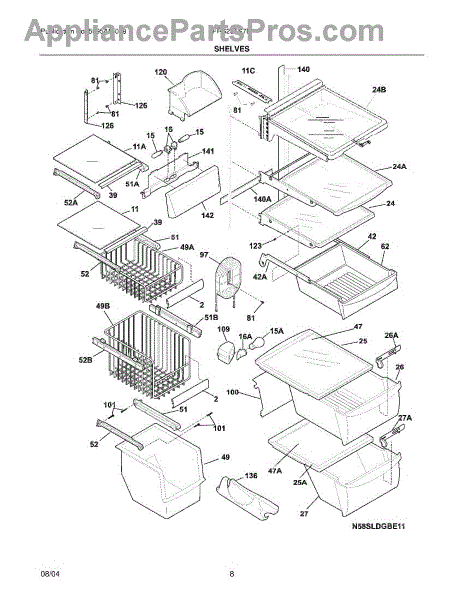 Parts for Frigidaire FRS26TS7DW2: 09 - Shelves Parts