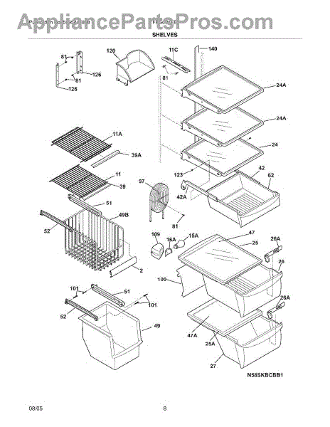 The Refrigerator Shelf is an OEM replacement part for Frigidaire side-by-side refrigerators. It is a durable glass surface that provides adjustable storage for various food items within the refrigerator compartment.