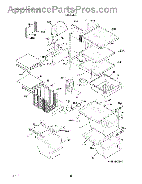 Over time, the glass shelf can become damaged due to heavy items being placed on it, accidental impacts, or thermal stress from temperature changes. Replacing a damaged shelf ensures safe and effective storage inside the refrigerator.