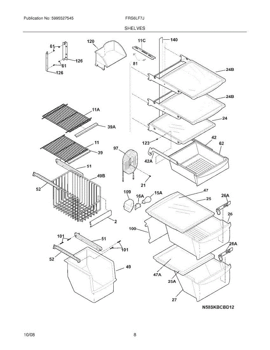Mounts to the freezer wall to support wire baskets. Replace if cracked, broken, or pulling away from the wall causing baskets to sag or fall out.