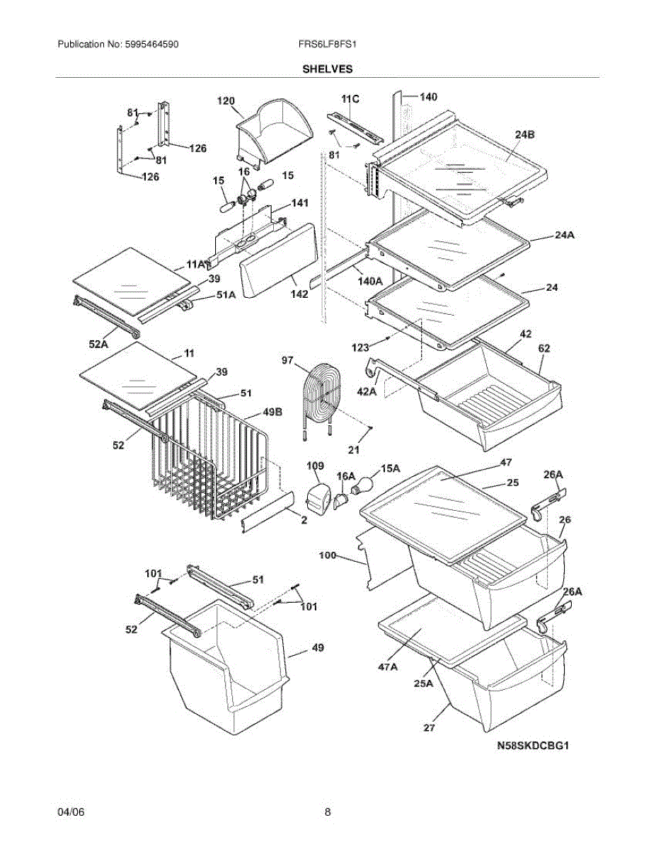 Over time, the glass shelf can become damaged due to heavy items being placed on it, accidental impacts, or thermal stress from temperature changes. Replacing a damaged shelf ensures safe and effective storage inside the refrigerator.